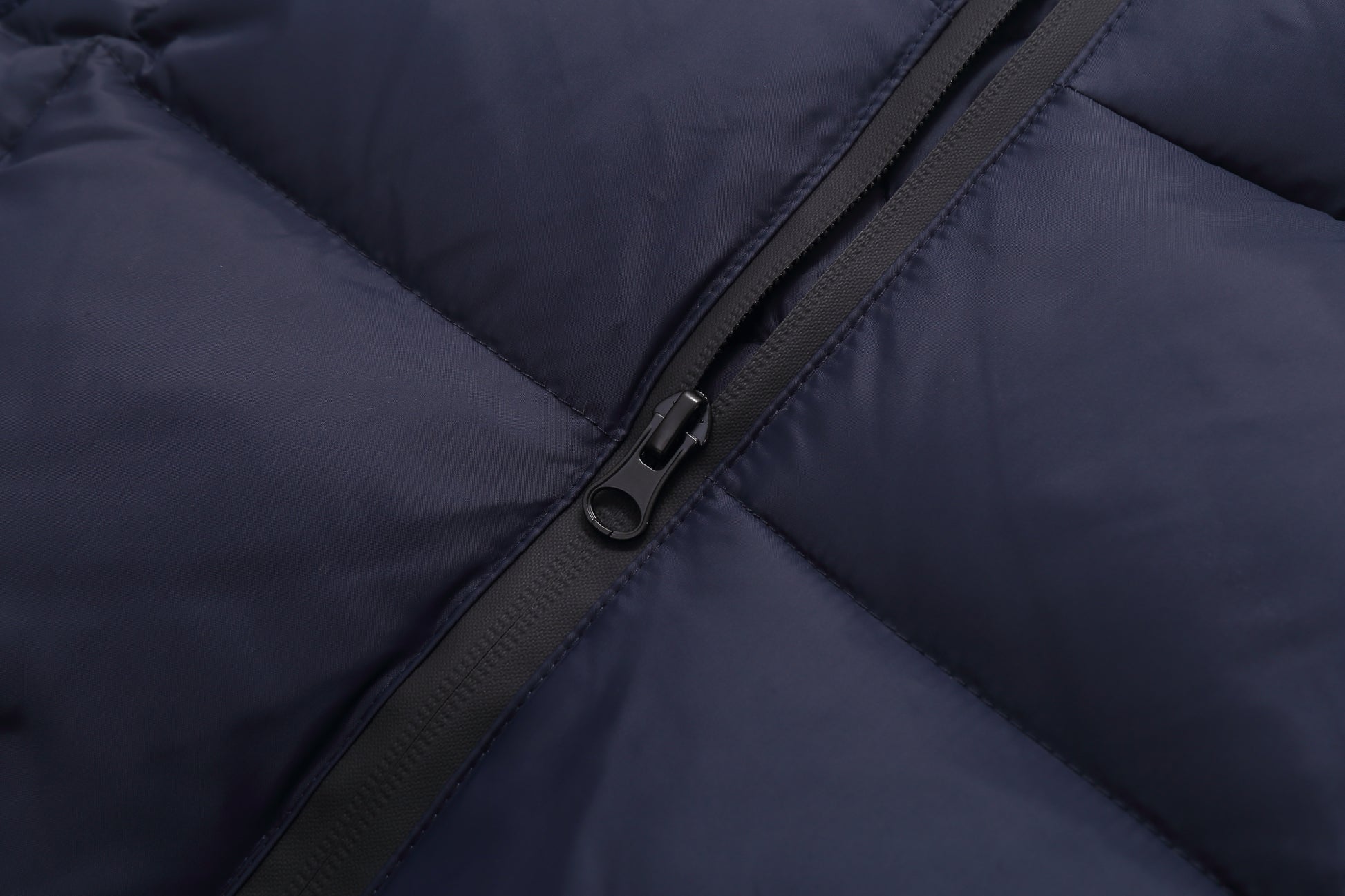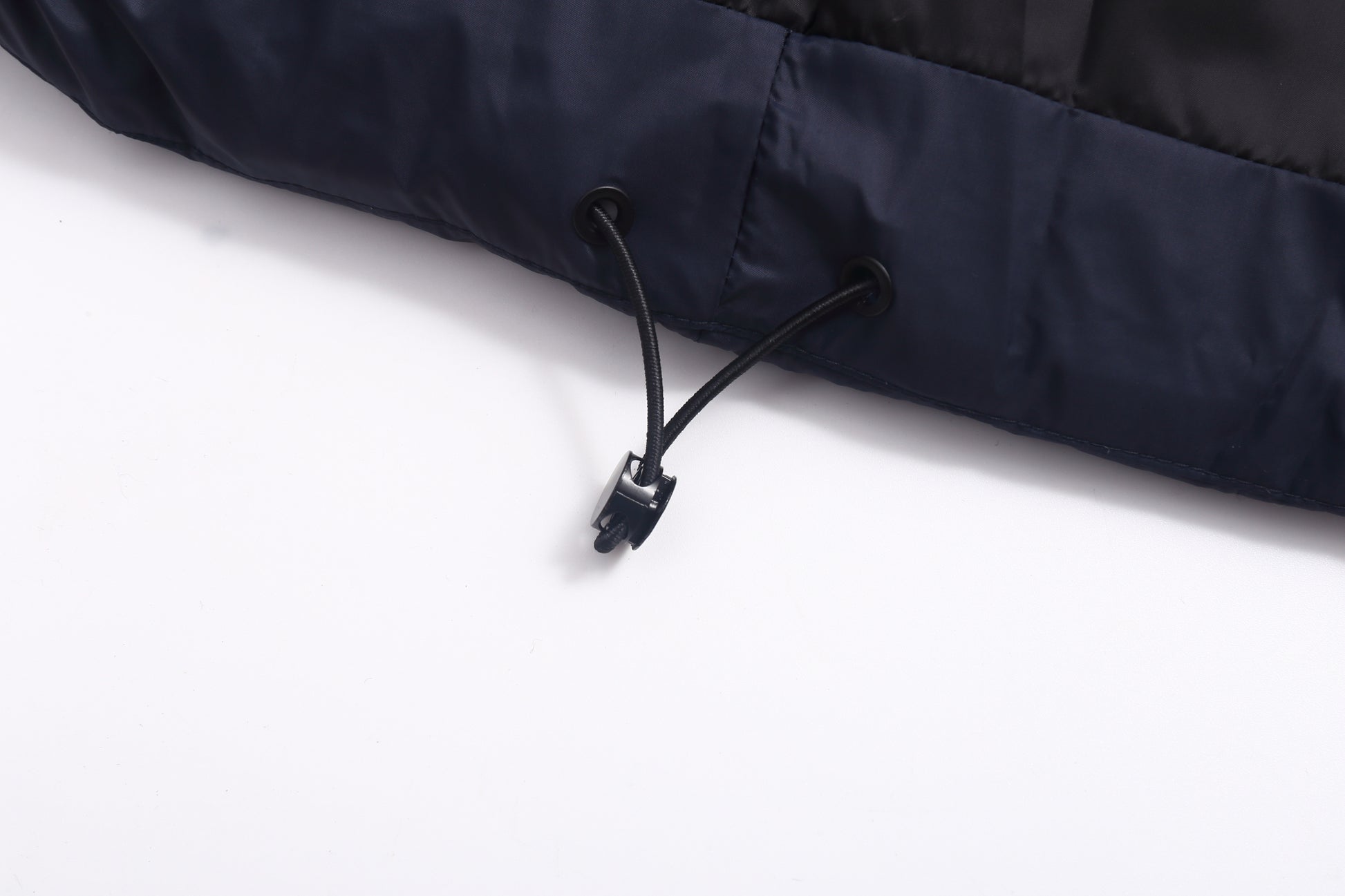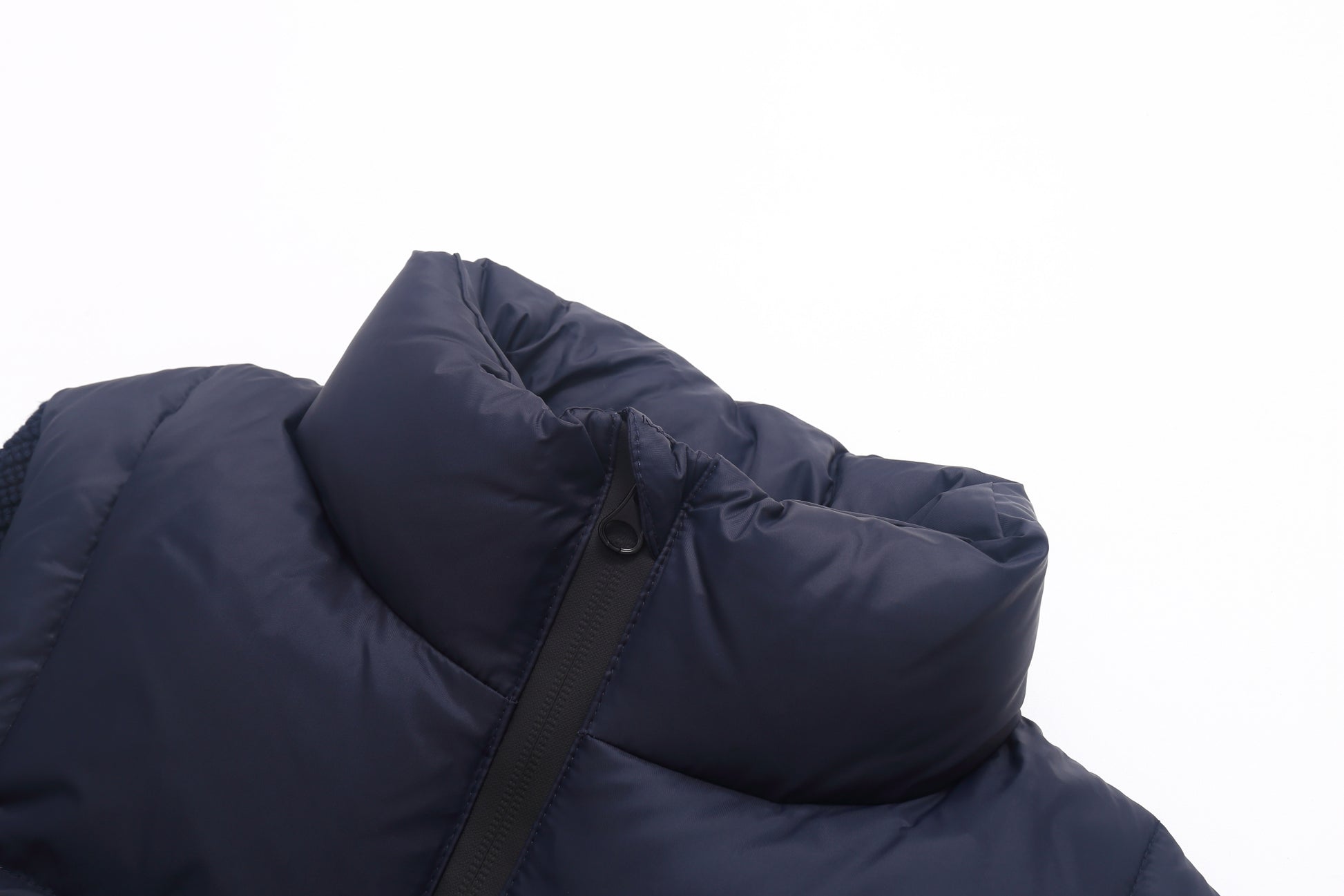 This Black hybrid jacket features knit sleeves and a down-filled center, combining elegance with exceptional style and a flattering fit.