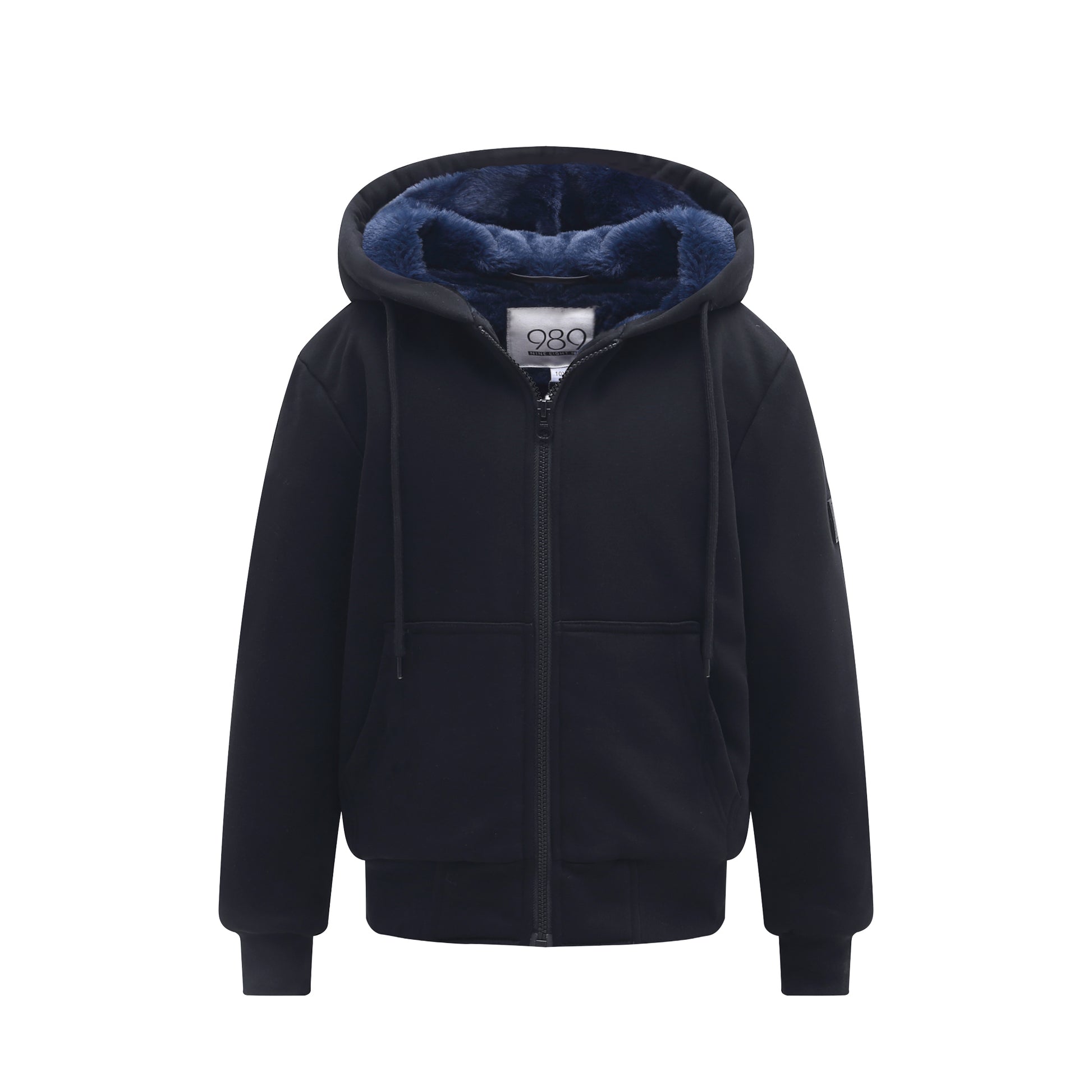 Black Sweatshirt with Navy Fur. Cozy Up! The Perfect Sweatshirt for Chilly Days and Nights! Fully Fur Lined!
