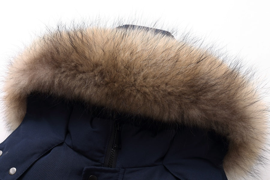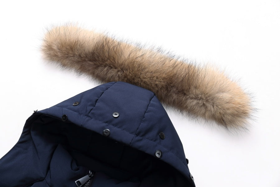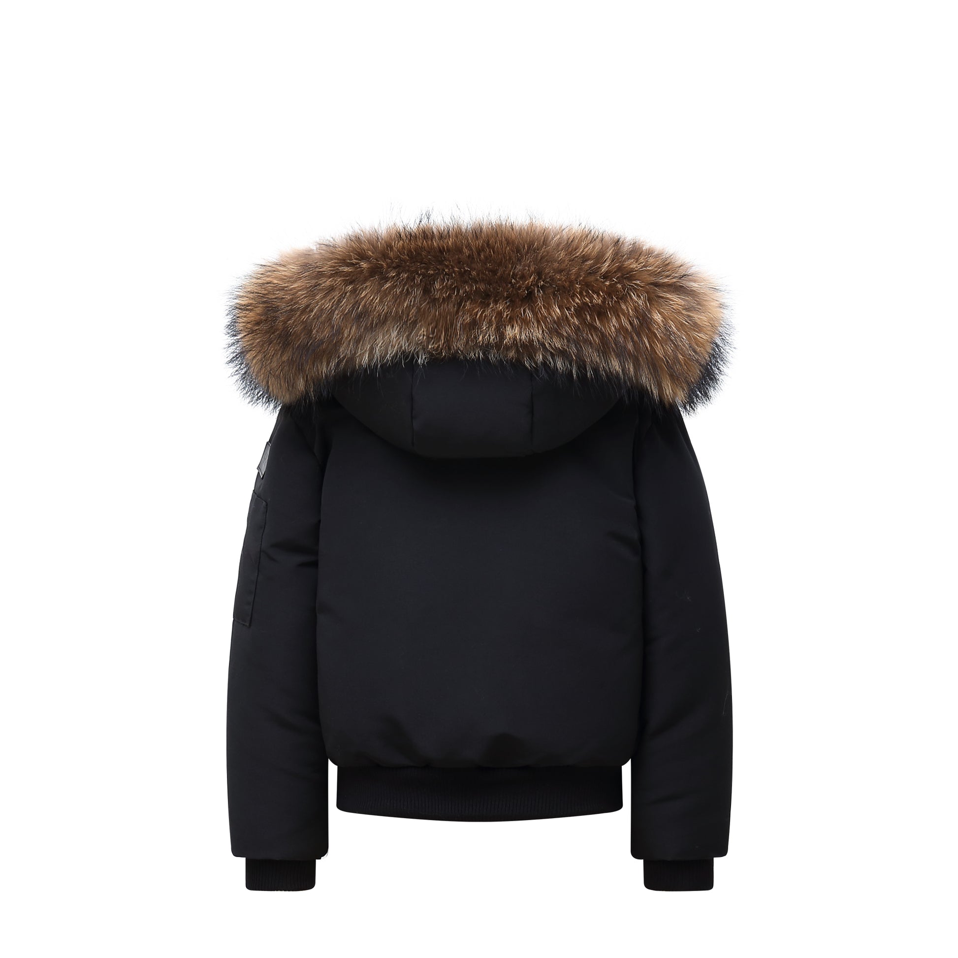 Keep your little one cozy in this black heavy coat, complete with soft brown fur around the hood, plenty of zipper pockets, and finger holes to keep hands snug and ready for fun.