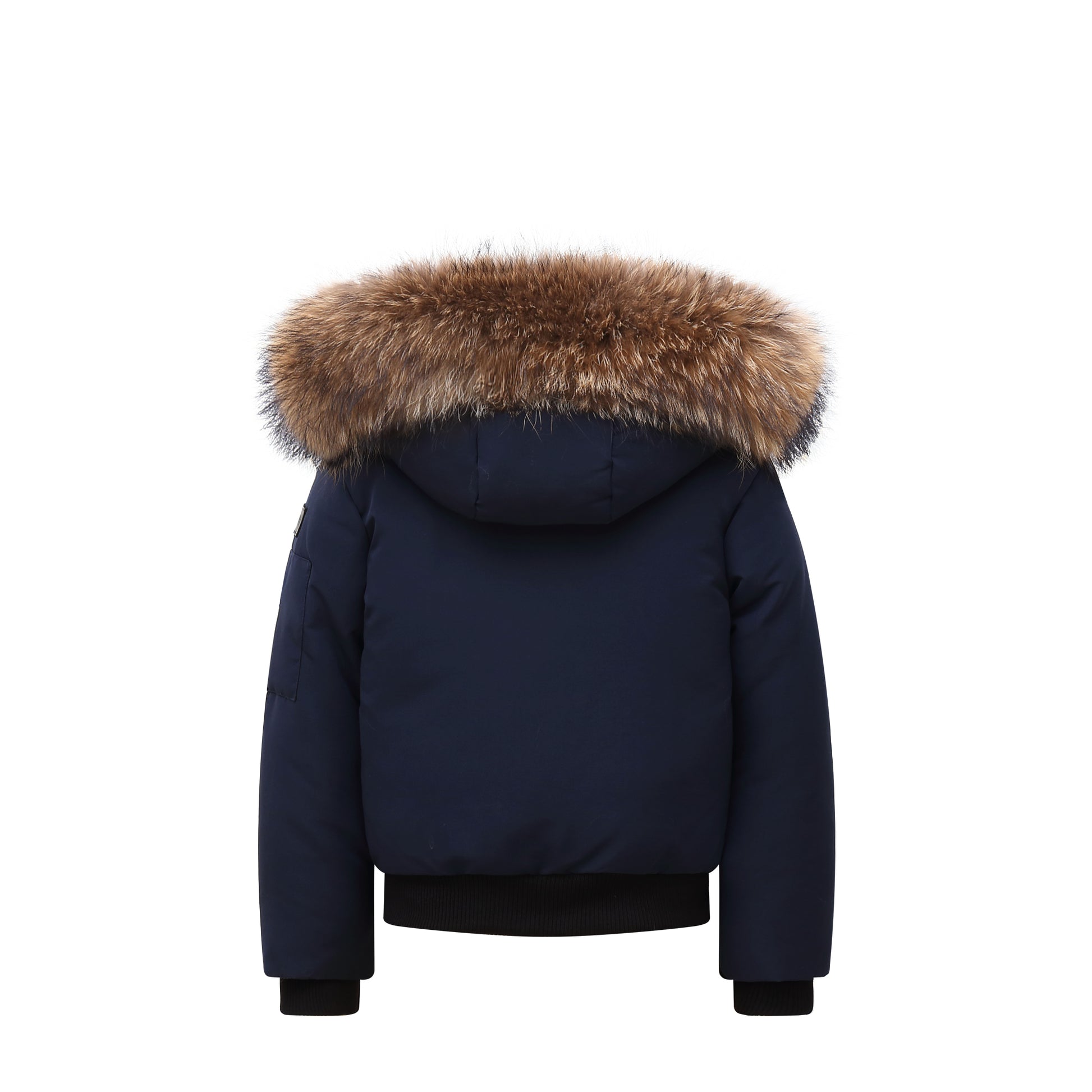 Keep your little one cozy in this navy heavy Fur lined coat, complete with soft brown fur around the hood, plenty of zipper pockets, and finger holes to keep hands snug and ready for fun.